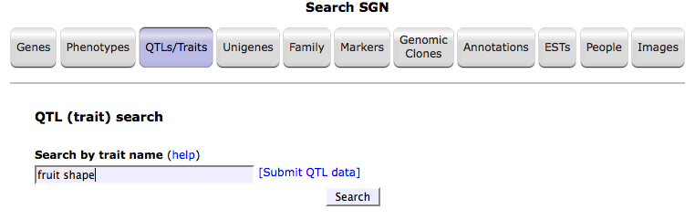 1. Search the database using a trait name. For example, 'fruit shape'.